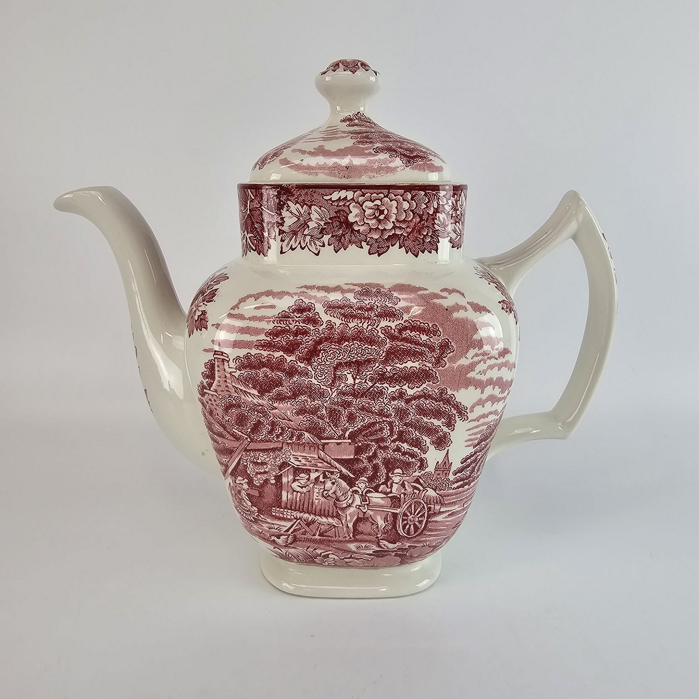 Kaffekande fra det engelske stel Rød Paris (Enoch wood's, English scenery)Producent Wood & Sons, England