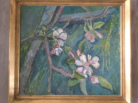Maleri af Johannes Bæch - Blomstrende frugttræs gren 1967.