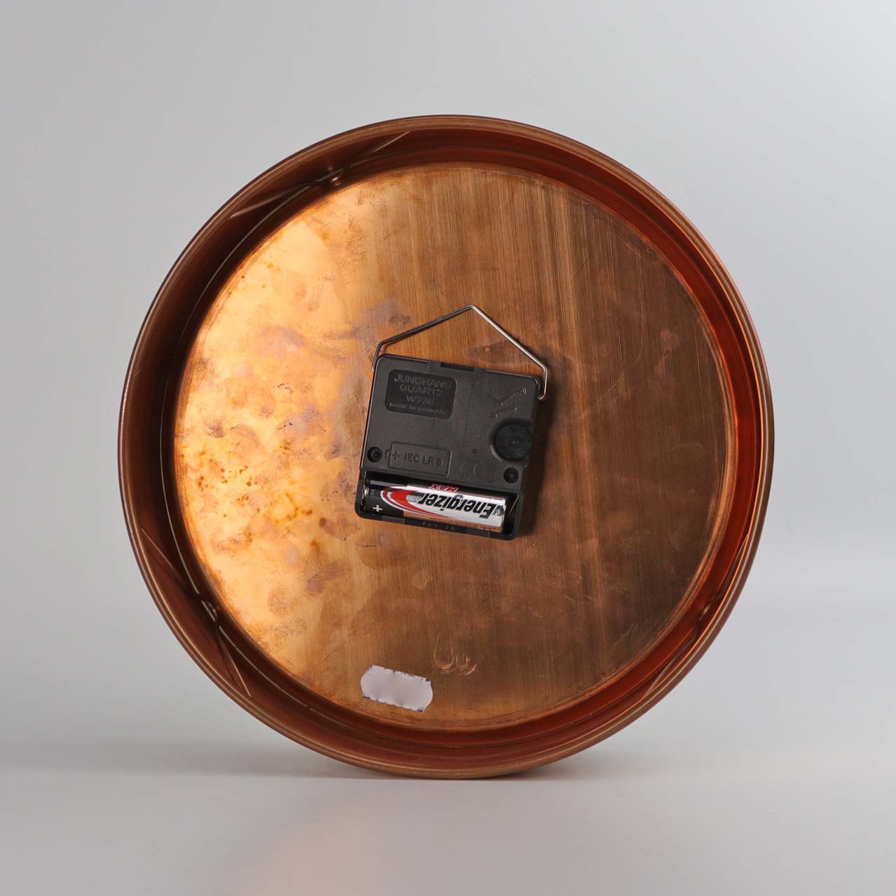 Ur til vægophæng i kobber med hvid urskive bag glas fra serien LivingFormgiver Henning Koppel