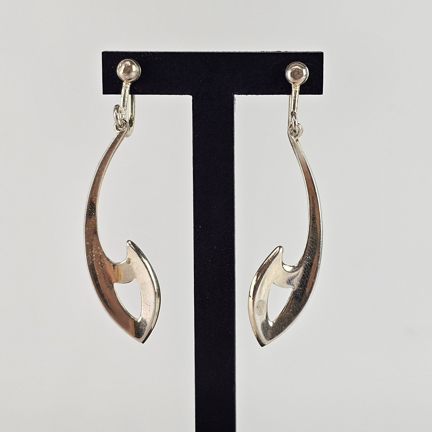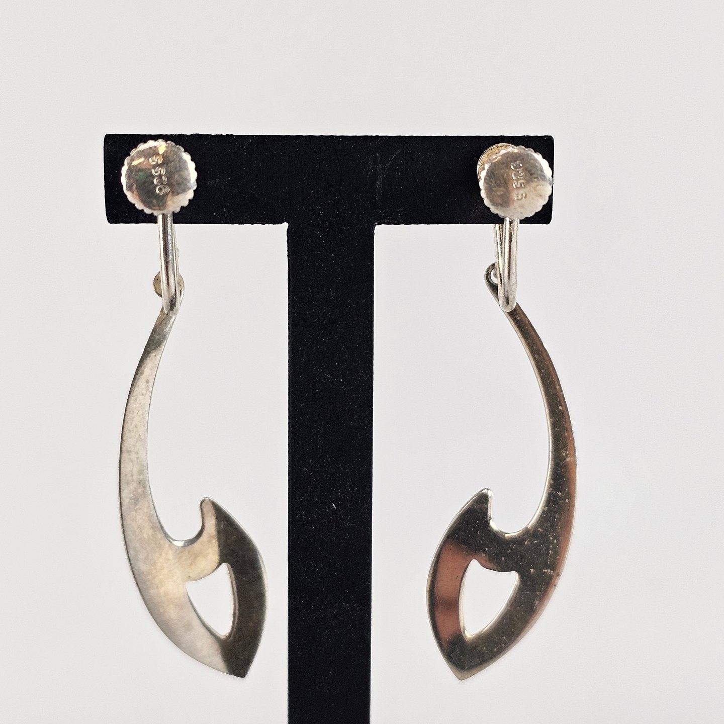 Lange sølv ørering med skruelås.Stemplet 925s, formentlig Hans Jensen