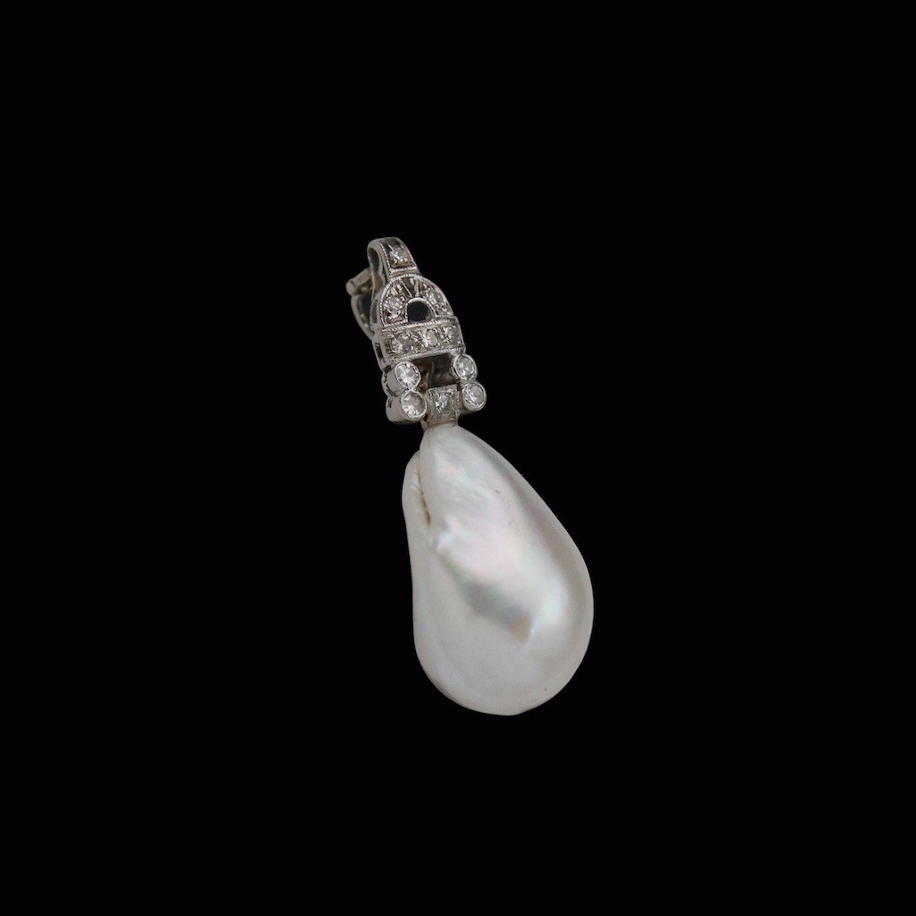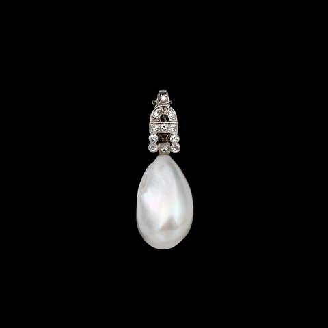 Vedhæng i platin med stor perle og brillanter.11 brillanter og stor dråbeformet ferskvandsperle.
