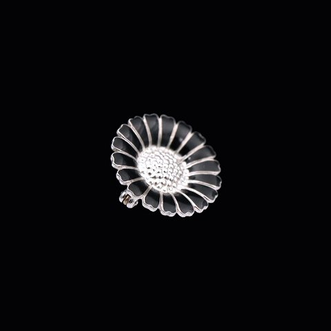 Bernhard Hertz. Sterling Silver Daisy Brooch with black Enamel - 25mm.Designed and crafted by Bernhard Hertz / Lund - Copenhagen.