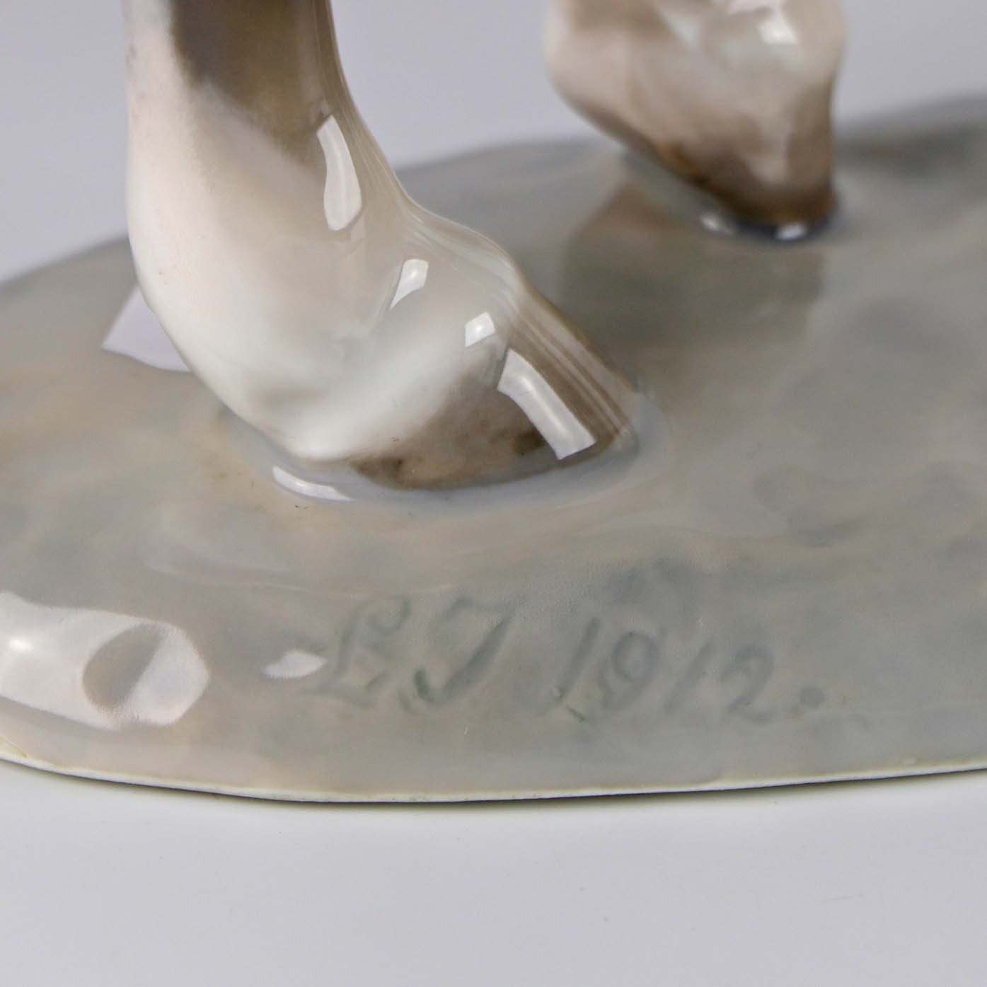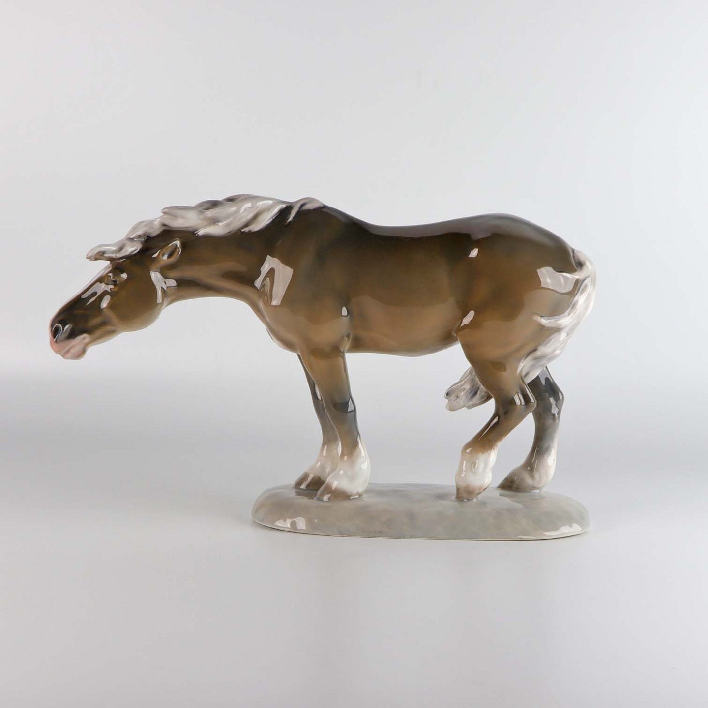 Figur i porcelæn med motiv af stående hest i vind. Nr. 1362Formgiver Lauritz Jensen, år 1912