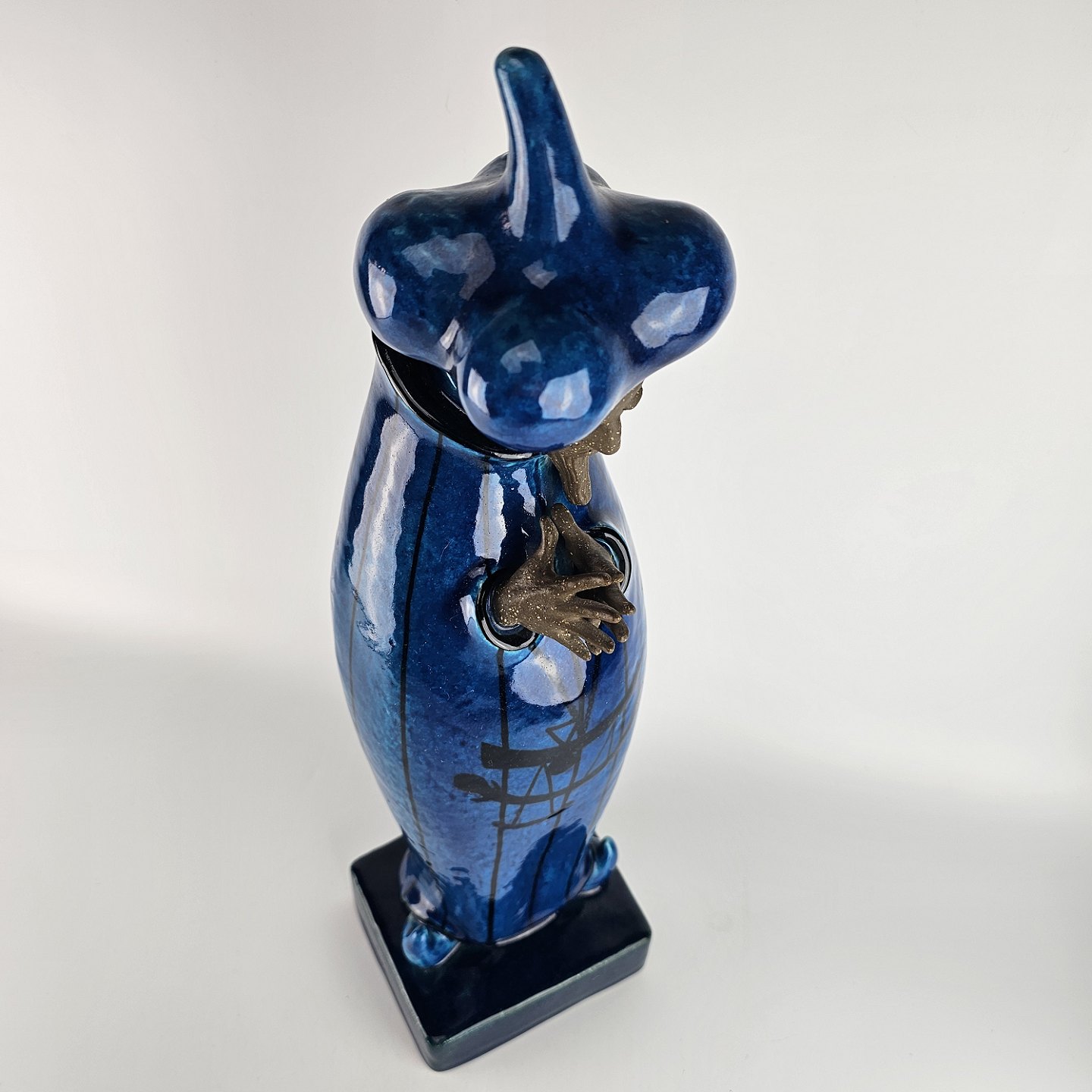 Figur i delvis glaseret stentøj med motiv af mand med østerlandsk beklædning i blå farve som er navngivet Storvesiren. Nr. 21700Formgiver Johannes Hedegaard.