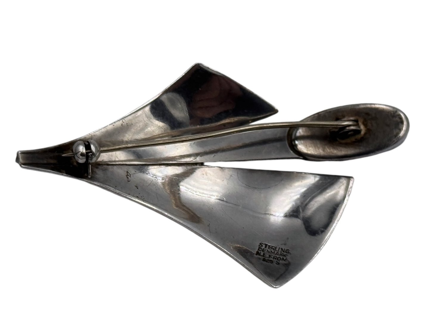 Niels Erik From sterling silver, large and modern brooch with amber from around 1950 to 1960.Hallmarked "N.E. FROM 925S". N.E. From was a silversmith in Randers and Nakskov from 1944 until 2009 and was known for making jewellery in a high quality.