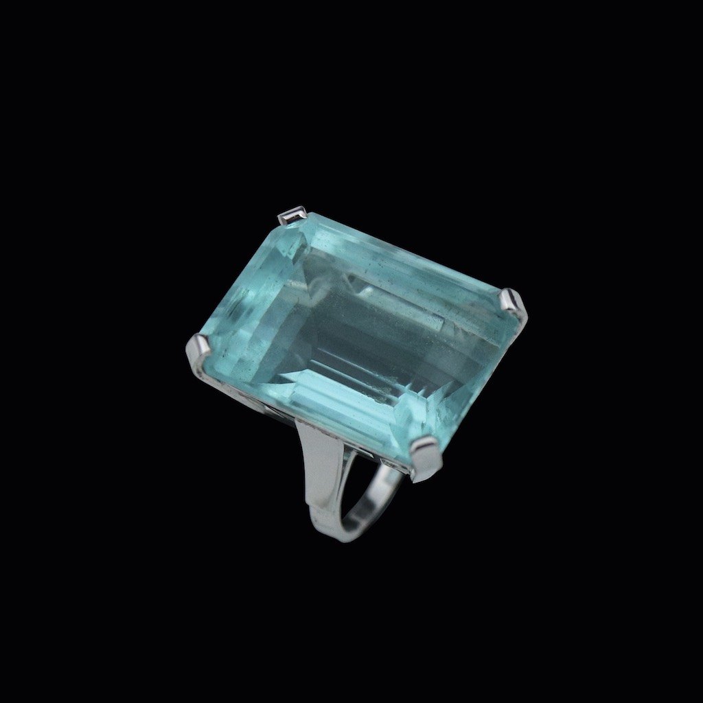 Ring i 14k hvidguld med aquamarin.Stemplet 585.
