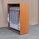Ældre skab i lakeret teaktræ med monteret fold-ud seng i metal samt madras. Skabssengen er udstyret med hjul, så den let kan flyttes rundt.Producent ukendt