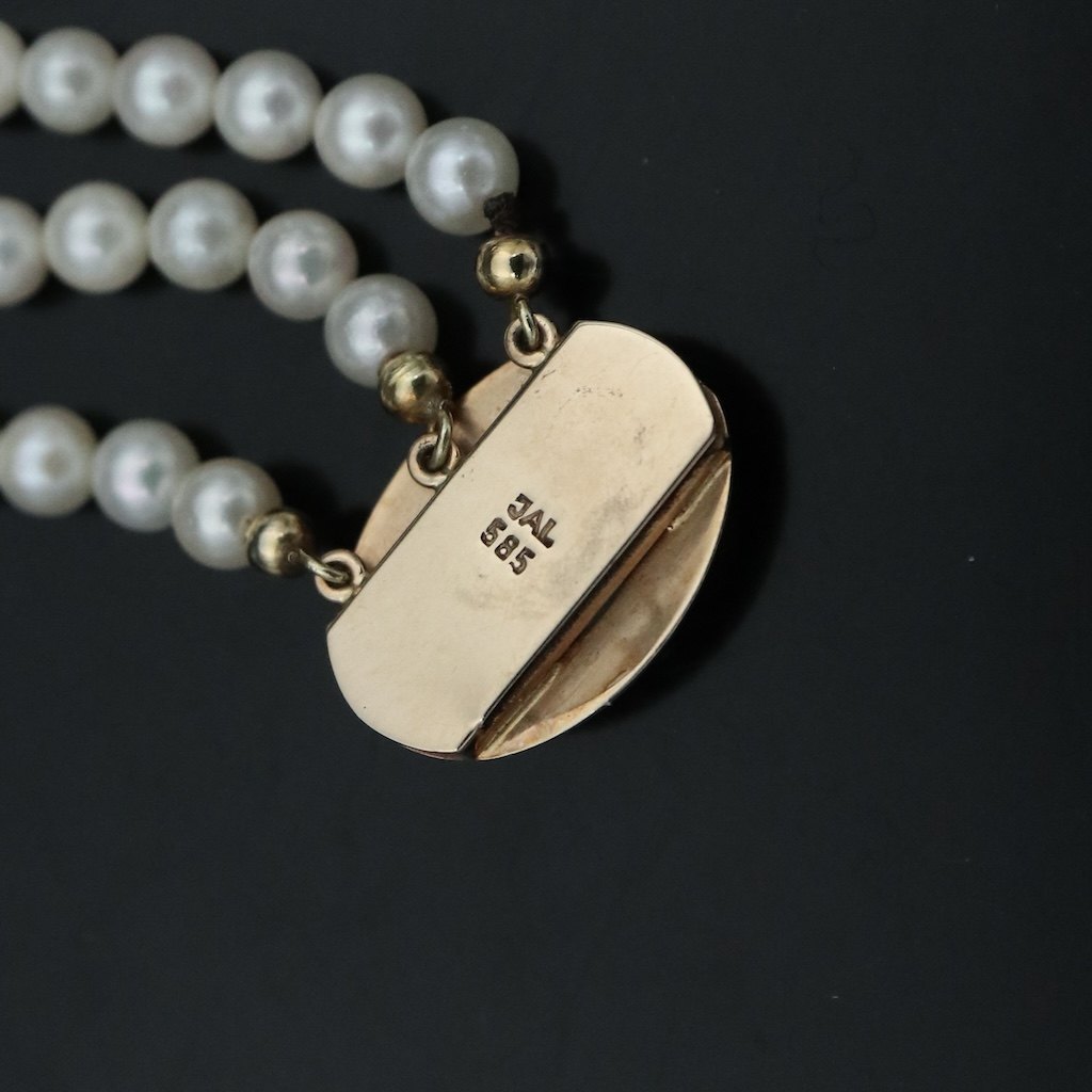 Paul Asger Larsen. Tre-radet perlearmbånd med lås i 14k guld med Jade.Tegnet og udført hos Paul Asger Larsen - 1953 - 1988.