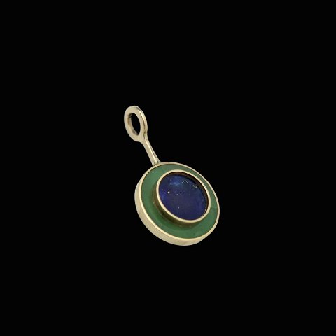 Ole Bent Petersen. Vedhæng i 18k guld med Nephrit & Lapis Lazuli.Tegnet og udført af Ole Bent Petersen - Copenhagen 1973 - 1990.
