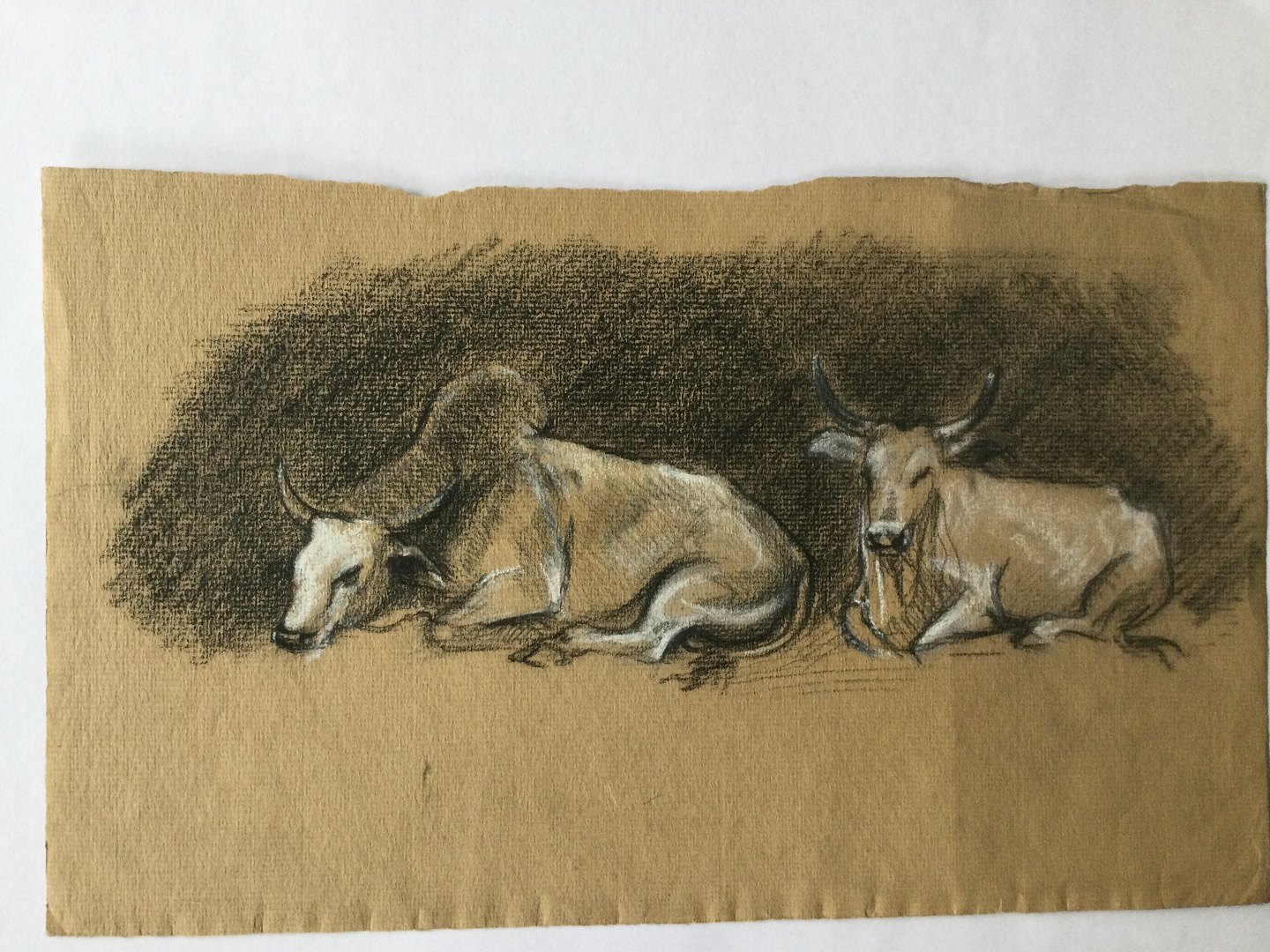 Kul/hvidkridt på papir.