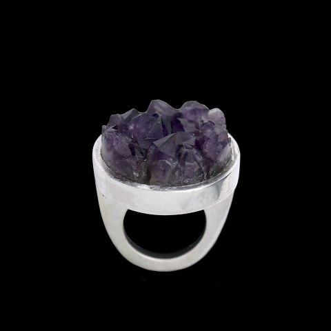 Boy Johansen. Ring i sterling sølv med ametyst.Tegnet og udført hos Svend Erik Boy Johansen - Aarhus.