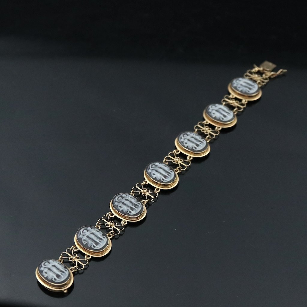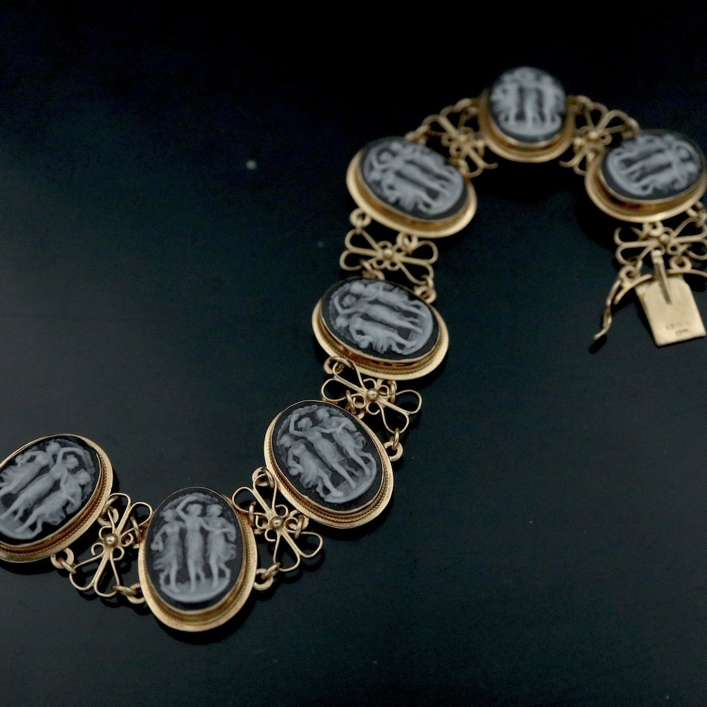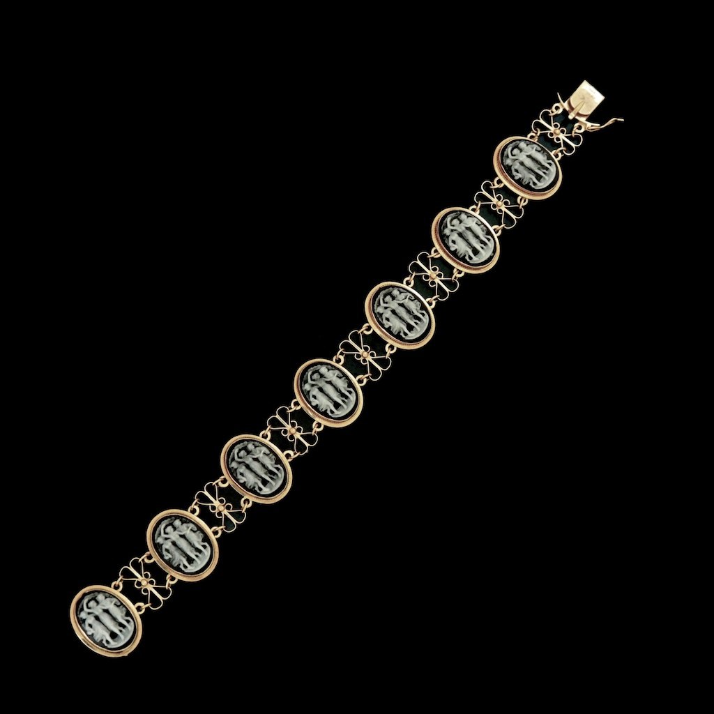 Armbånd i 18k guld med kamé-udskæringer.Stemplet 18k Italy.