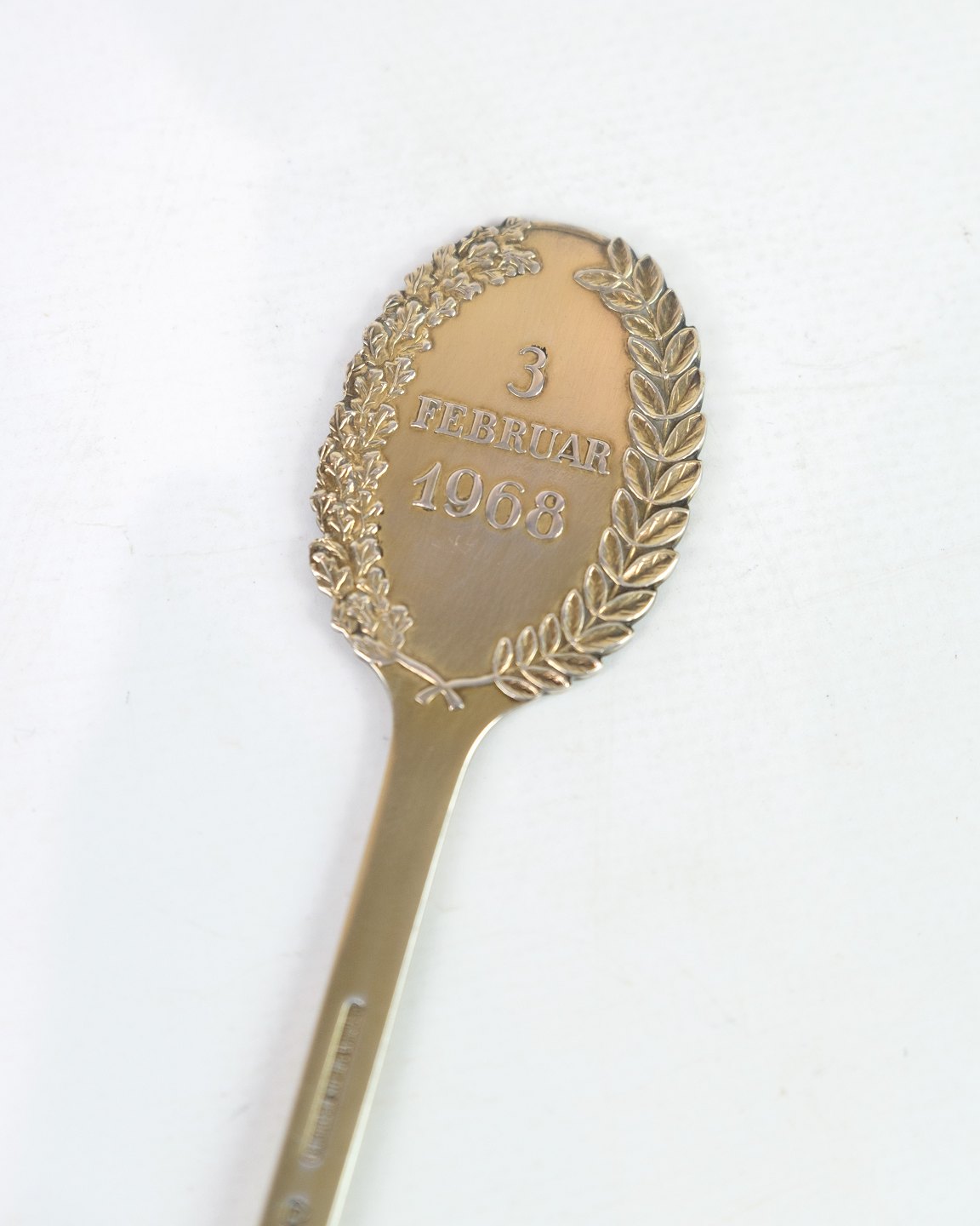 Anton Michelsen Mindeske lavet i forgyldt sterling sølv, designet af Egil Jensen fra 1968. Mindeskeen er lavet i Anledningen Af Prinsesse Benedikte & Prins Richards Bryllup d.3 Februar 1968.Mål: L:16,5 cm