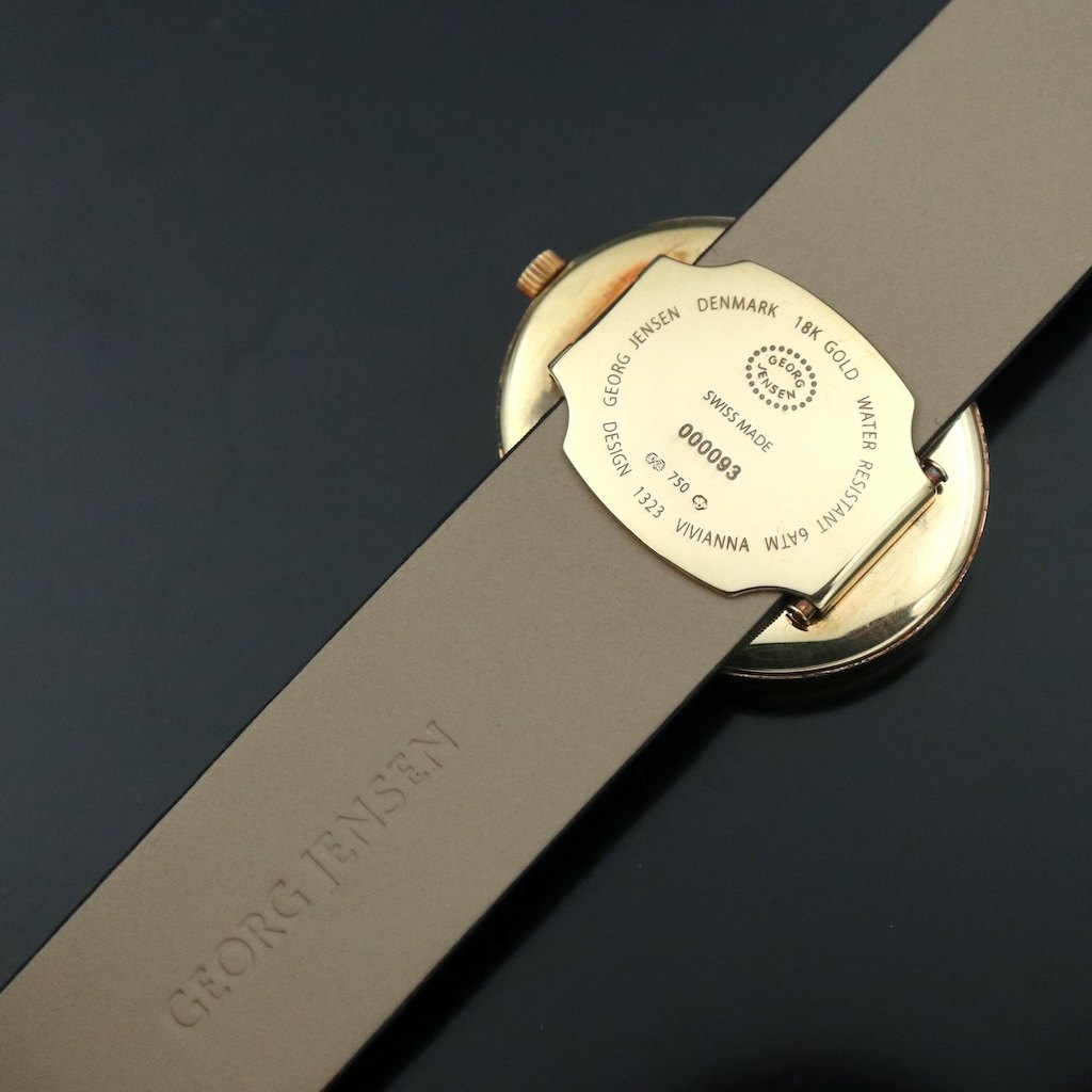 Georg Jensen Armbåndsur i 18k guld #1323 - Oval - Vivianna TorunUrkasse og spænde i 18k guld. Brun Satin Rem.