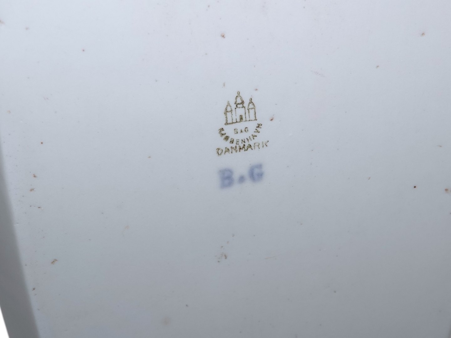 Bing & Grøndahl Blåmalet / Musselmalet, bakke.Af fabriksmærket kan det udledes, at denne er produceret mellem 1915 og 1948.