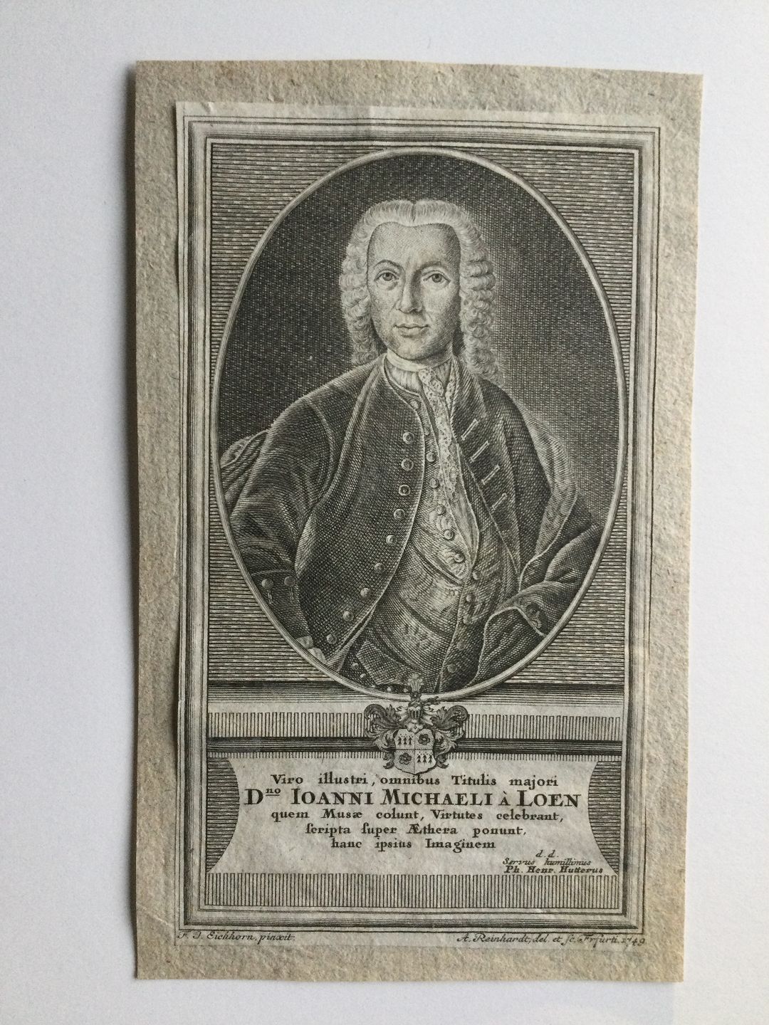 Kobberstik af Andreas Reinhardt - Portræt af Forfatteren Johann Michael von Loën 1749.