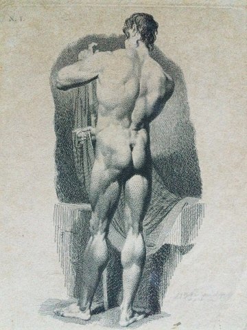 Johann Friedrich Bolt (1769-1836):Nøgen mandlig model, set bagfra 1792.