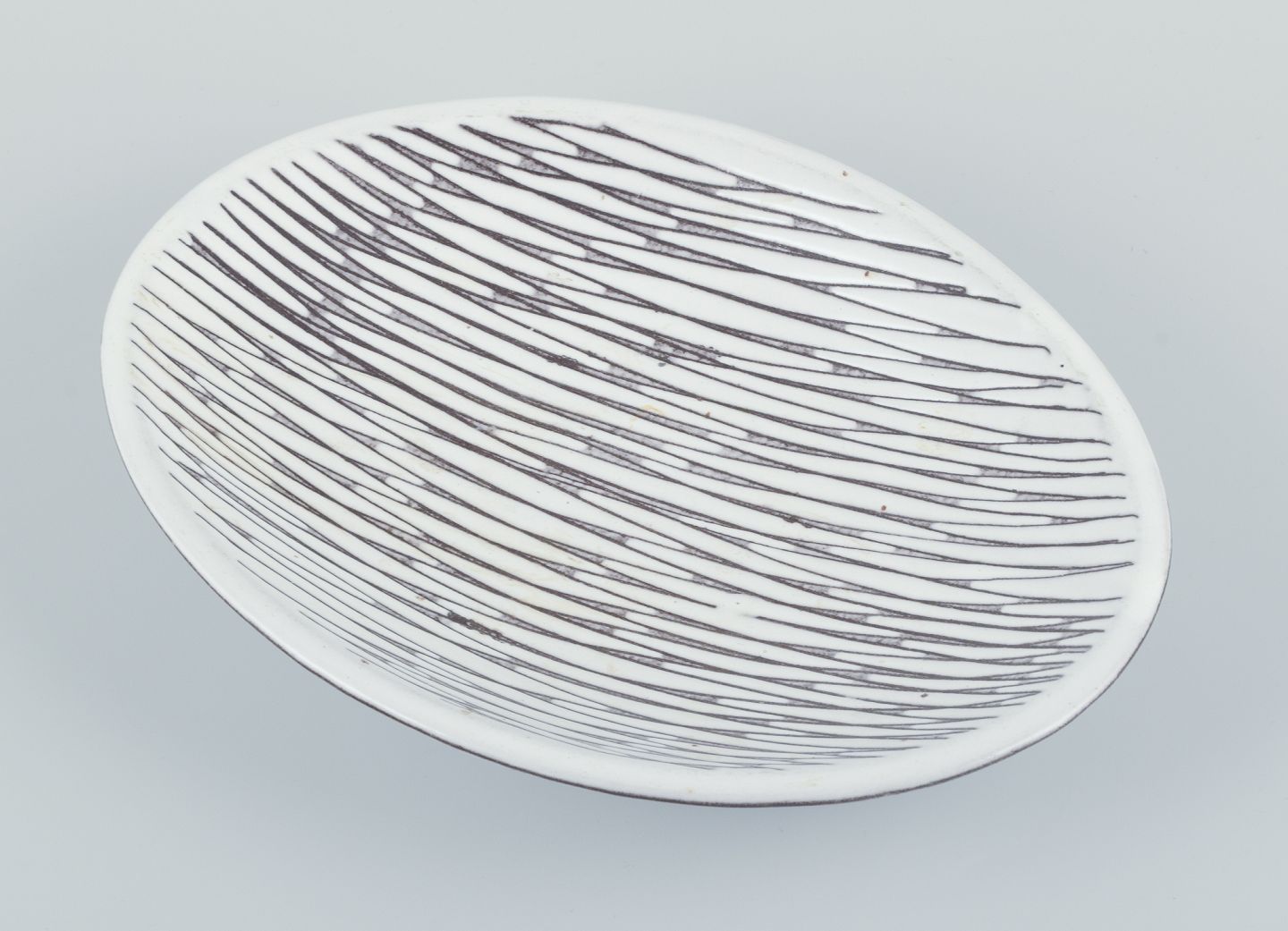 Mari Simmulson (1911-2000) for Upsala Ekeby.Lav keramikskål. Dekoreret med linjer.