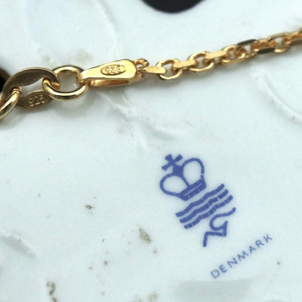 Royal Copenhagen. Vedhæng i porcelæn med forgyldt sterlingsølv.