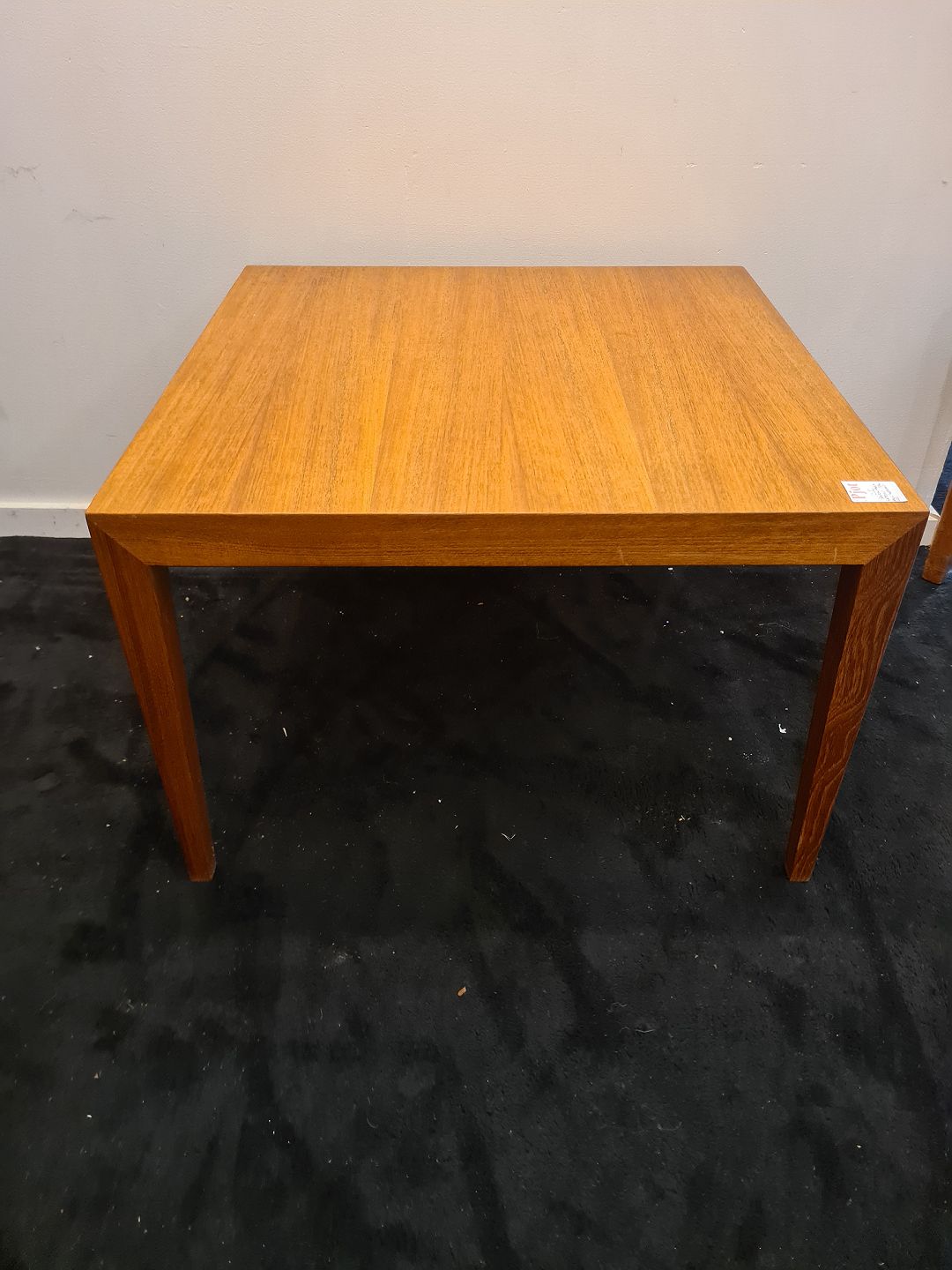 Severin Hansen kvadratisk sofabord m. plade i fineret teak.Produceret hos Haslev Møbelsnedkeri ca. 1970'erne.