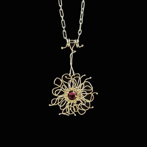 Bent Exner (1932-2006). Halssmykke i 14k guld med ametyst.Tegnet og udført af Bent Exner (1932-2006)
