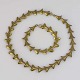 Et sæt med halskæde og armlænke i guldbelagt messing belagt med sort emalje og motiv af dobbbelte bladeProducent ukendt
