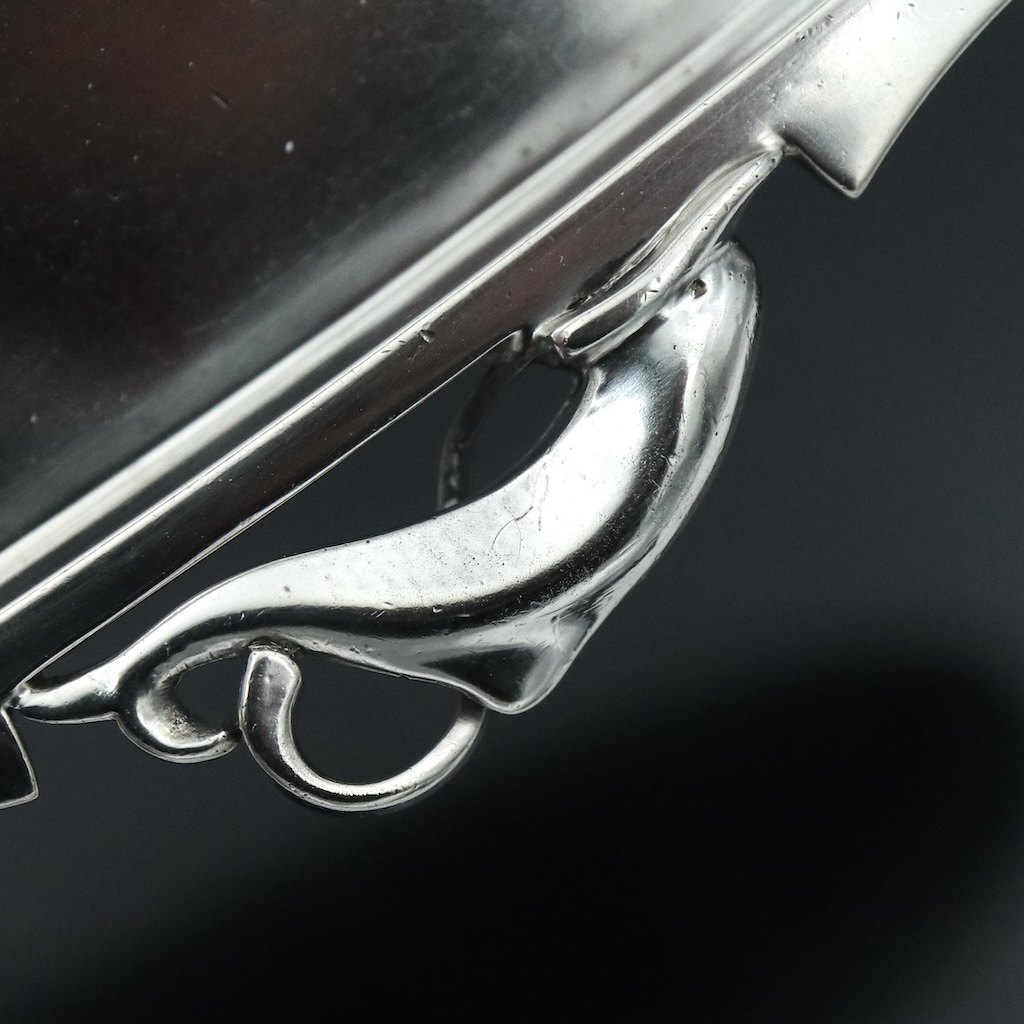 Georg Jensen. Bakke i sterling sølv med delfiner #150 - Harald Nielsen.Tegnet af Harald Nielsen 1892 - 1977.