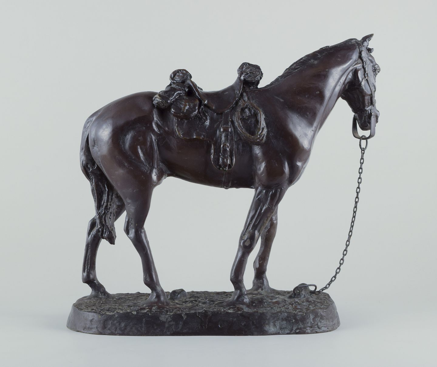 Ubekendt skulptør. Stor skulptur i form af hest på sokkel.I patineret metal. Tung skulptur af høj kvalitet.