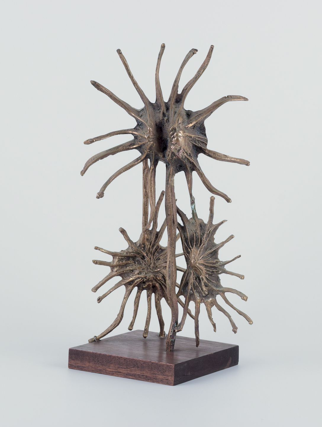 Stor bronzeskulptur. Massiv bronze. Surrealistisk. I stil med Dali.Træsokkel.