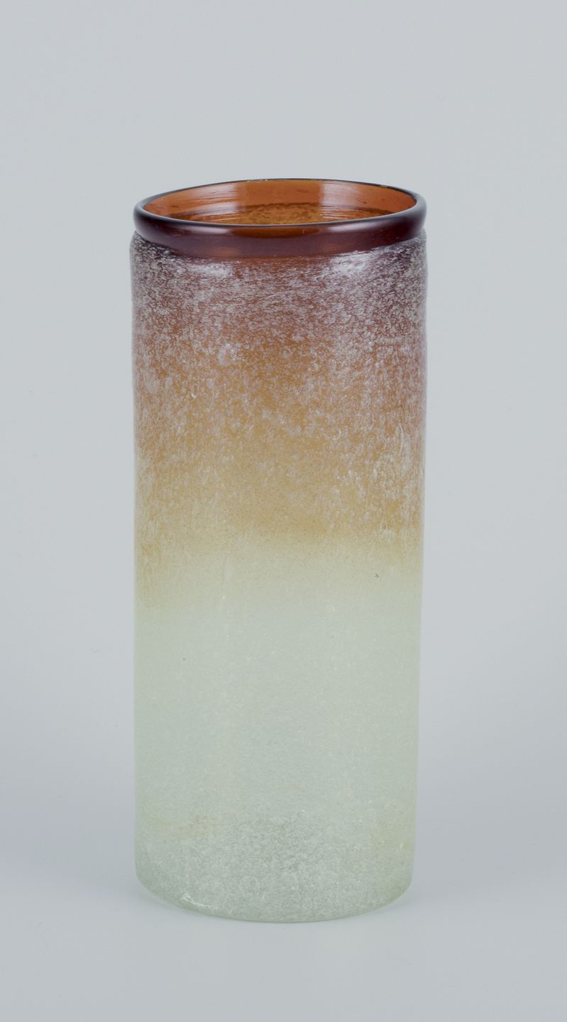 Napoleone Martinuzzi, Venini, Murano.A set of six tall glasses in art glass. Mouth-blown, with bubbles in the glass mass. Cylindrical shape.