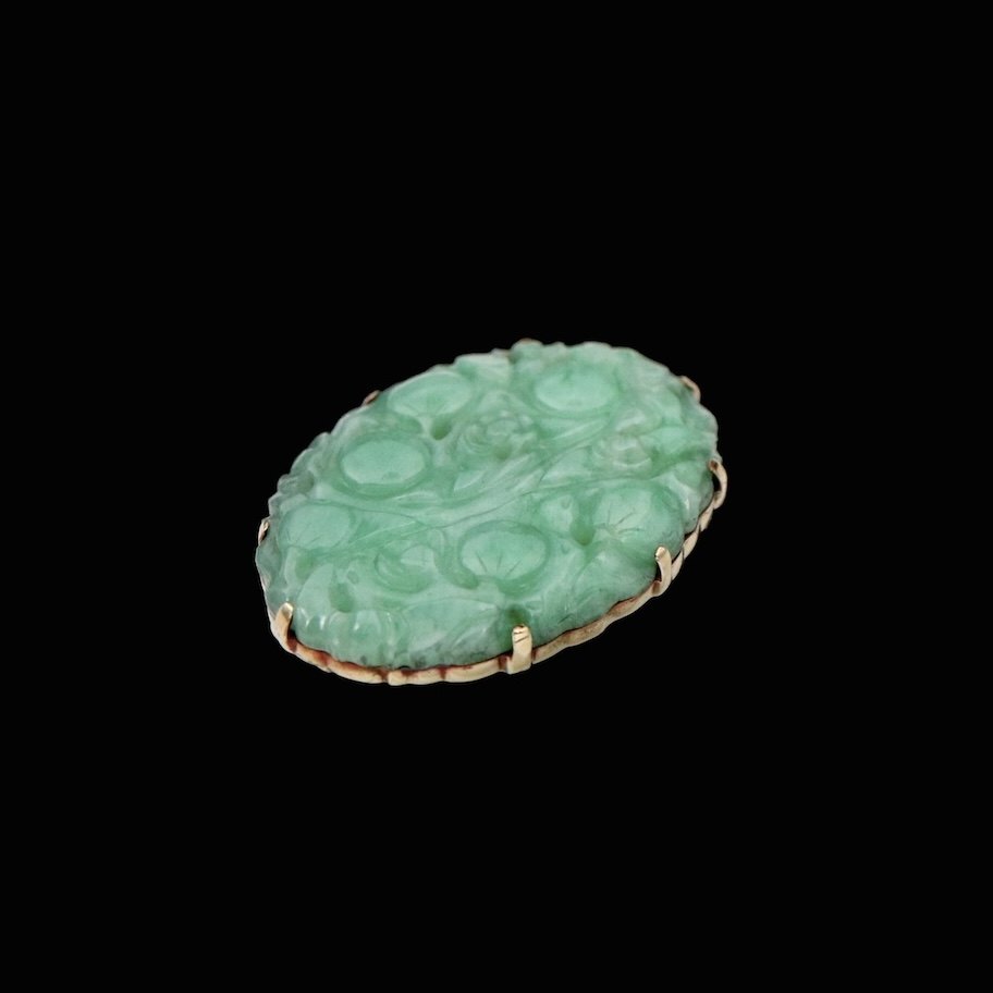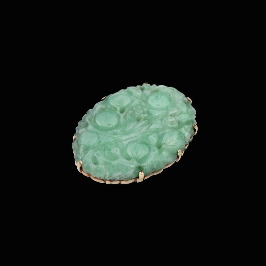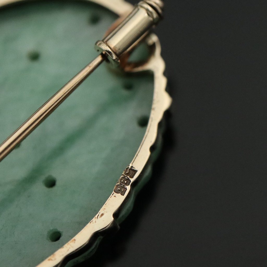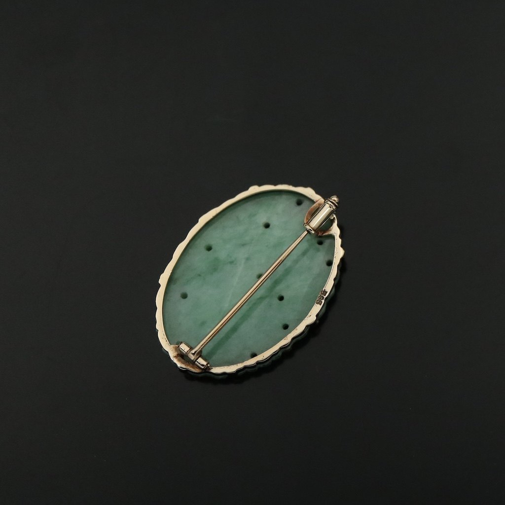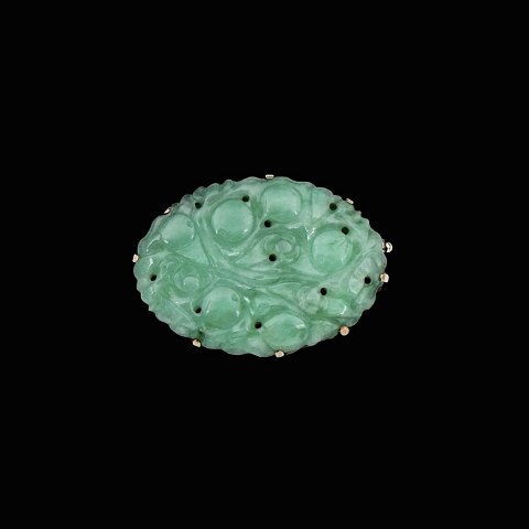 Broche i 14k guld med jade.Stemplet 585.