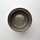 Lille krukke af tin med sort kugle på låget.Snirklet mønster på låget.