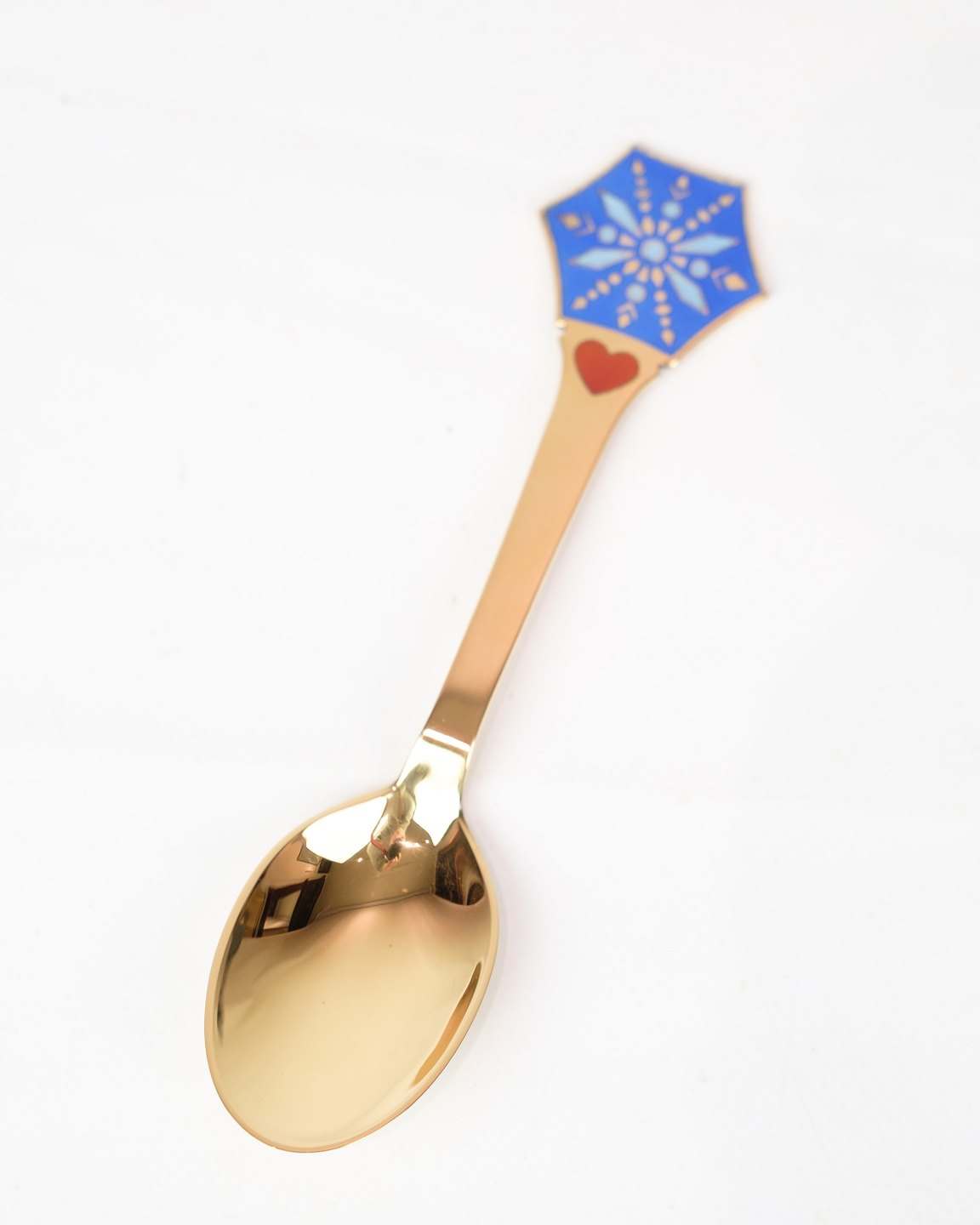 Juleske fremstillet af Anton Michelsen i Sterling sølv forgyldt af årgang 1976. Designet af maleren Gudmund Olsen i blålige farver og motiv af snekrytal.Mål: L:16cm