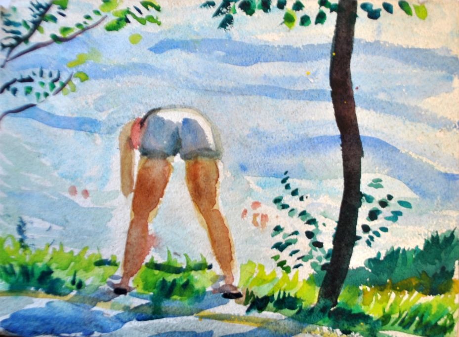 Gislason, Jon (1955 - ) Danmark: Lene maler. Akvarel. Signeret 1988. 29 x 38 cm.Uindrammet.