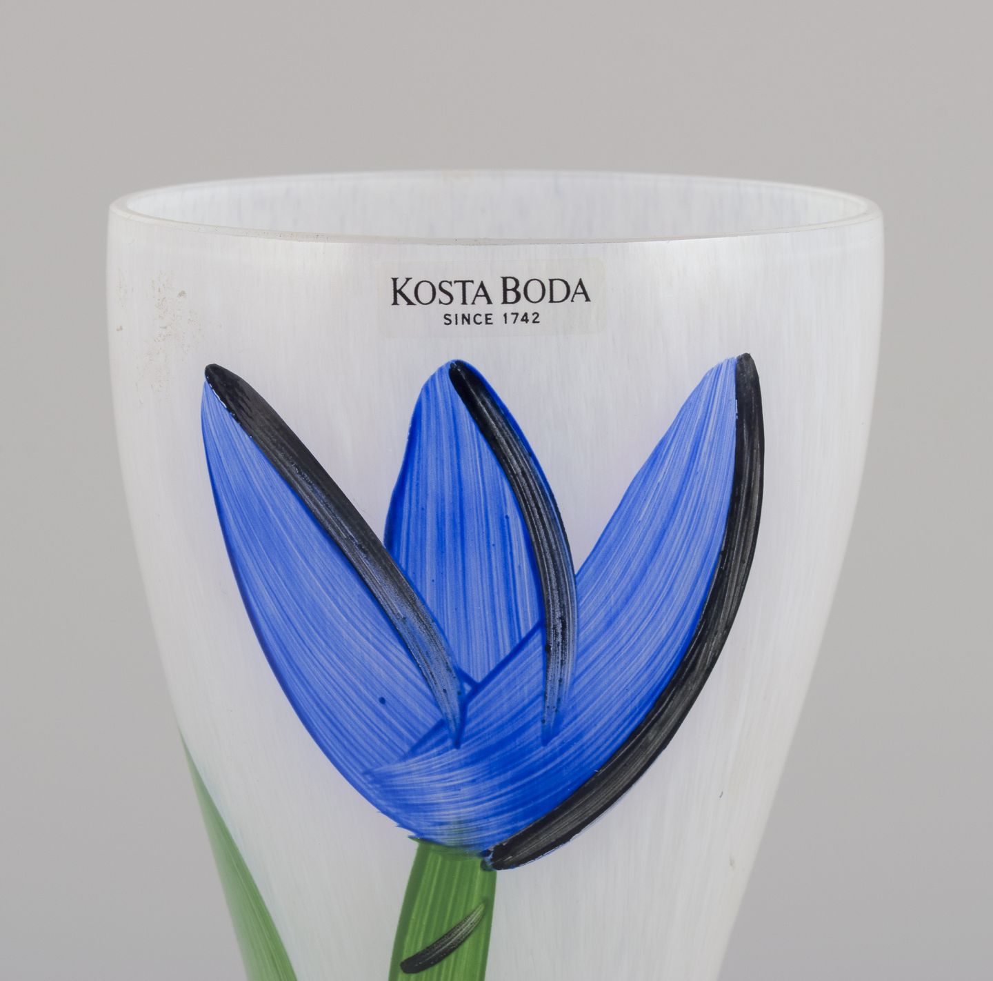 Ulrica Hydman Vallien for Kosta Boda, Sverige.Høj og slank vase med håndmalet blomstermotiv.