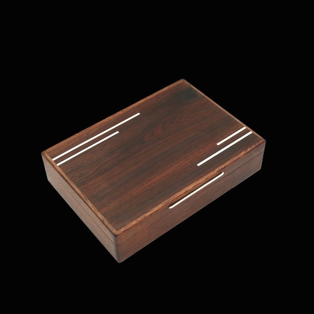 Andersen & Søhoel. Æske i Rio-Palisander med sterling sølv intarsia. 1960erneTegnet og udført hos Andersen & Søhoel, Aarhus.