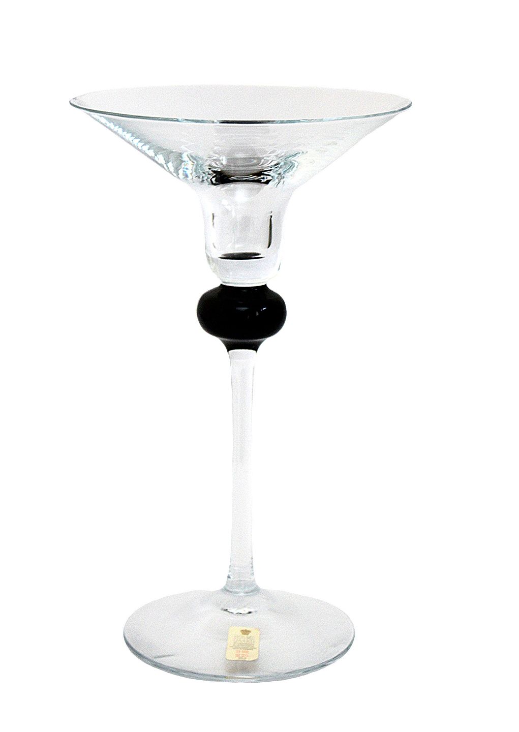 Holmegaard, Monte Carlo barserie, designet af Michael Bang 1984. Lysestage. Højde 22,5 cm. Øverste diameter 13,5 cm. Pris: 200 kr. stk. Lager: 1 Udstiller