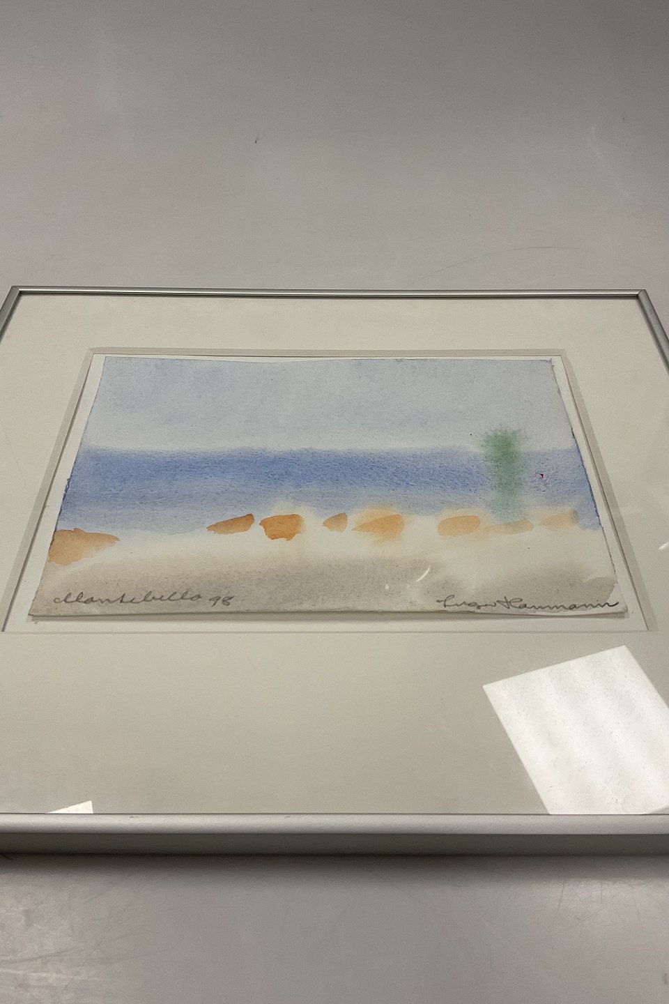 Inger Hanmann Akvarel Maleri i ramme 1Måler med ramme 32,5cm x 32,5cm og uden ramme 23cm x 15cm