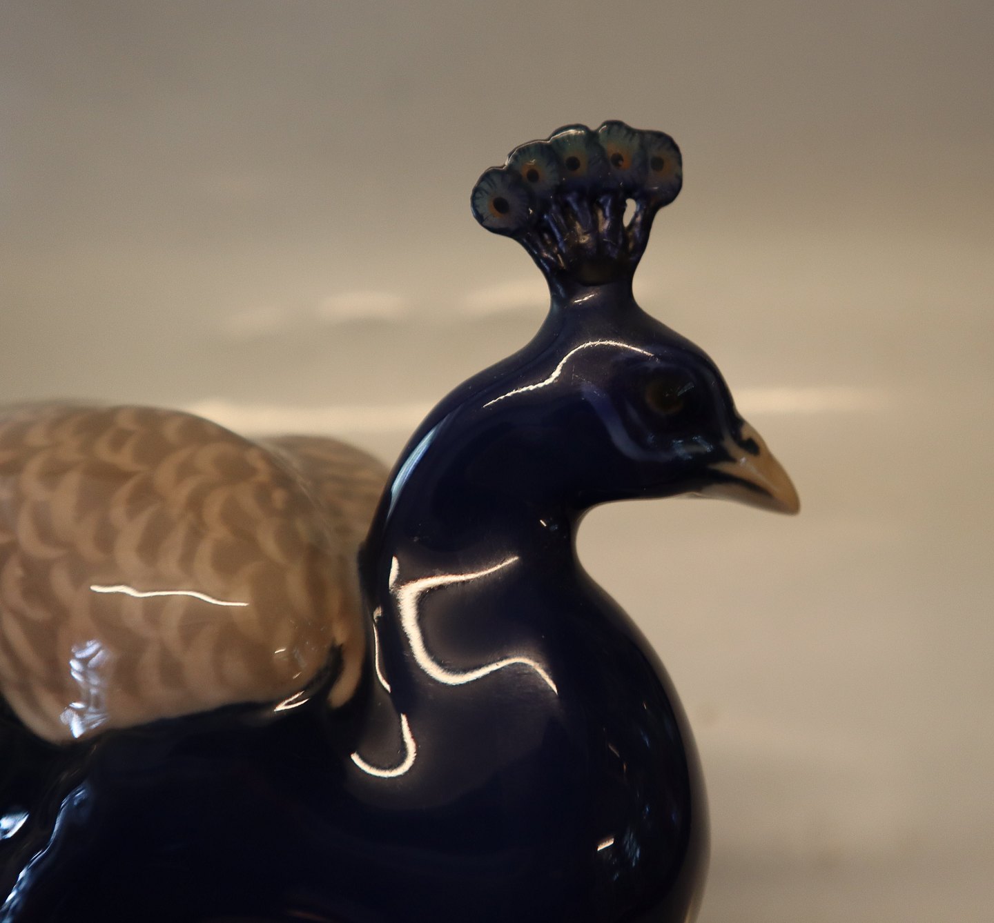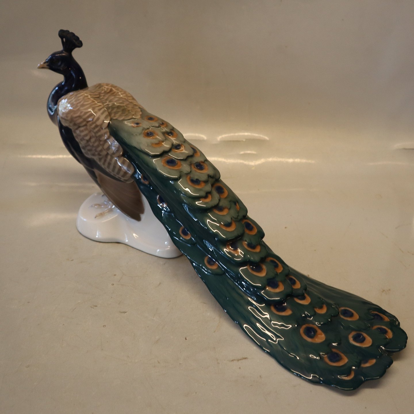 1 sortering med med professionel reparation af hovedfjer - se billederBing & Grøndahl fugl B&G 1628 Påfugl Dahl Jensen 40 cm I fin og hel stand.