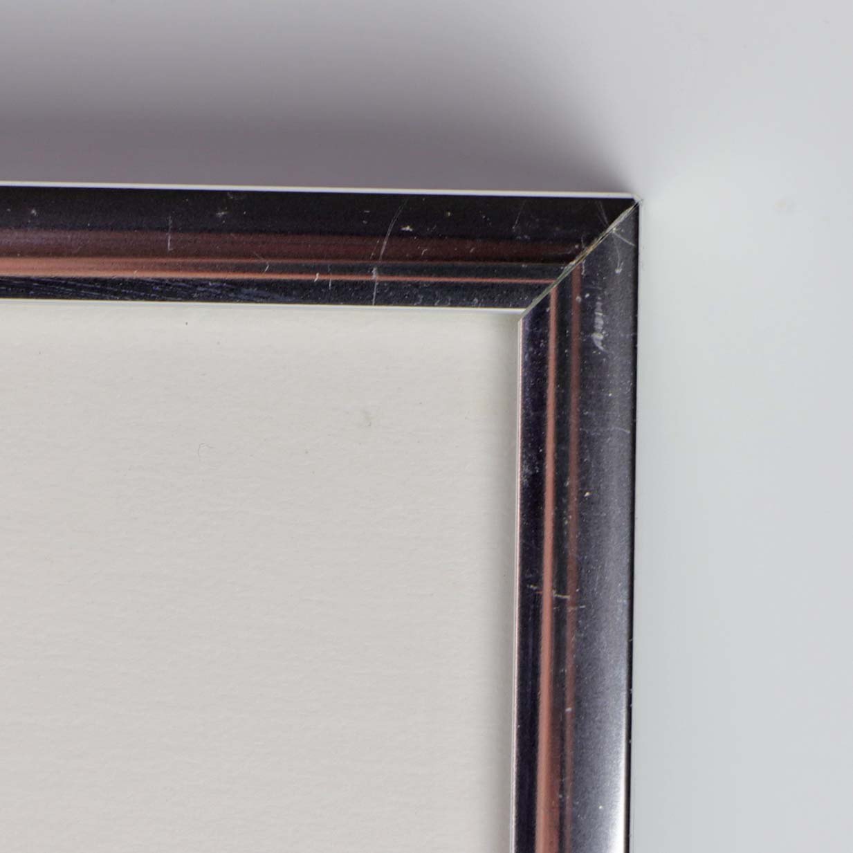 Indrammet tegning med farvet tuschpenne på papir i passepartout og sølvfarvet aluminiumsramme med abstrakt motiv af kvinde og blæksprutte.Kunstner Lise Færch