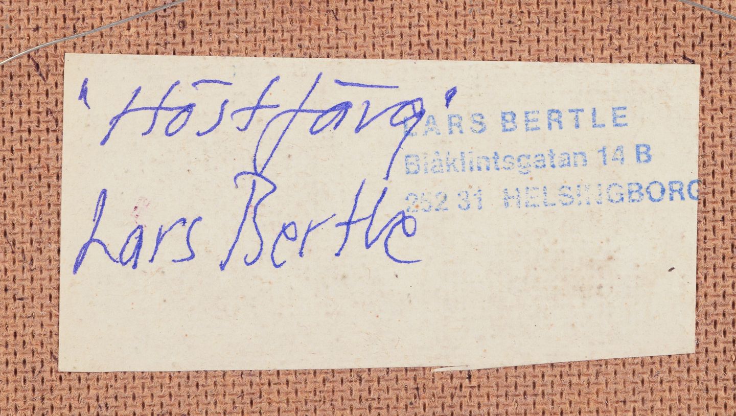 Lars Bertle (født 1925 i Helsingborg, Sverige) er en autodidakt svensk kunstner, der først i slutningen af 1960erne begyndte at male på fuld tid. Hans værker spænder fra landskaber og stilleben til abstrakte kompositioner, ofte med inspiration fra naturen og havet. Bertle er kendt for sin ekspressionistiske stil og brug af paletkniv, hvilket giver hans malerier en dynamisk og taktil kvalitet.
