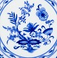 Et sæt på fem middagstallerkener i porcelæn. Løgmønstret dekoration. Tyskland.Ca. 1930/40’erne.