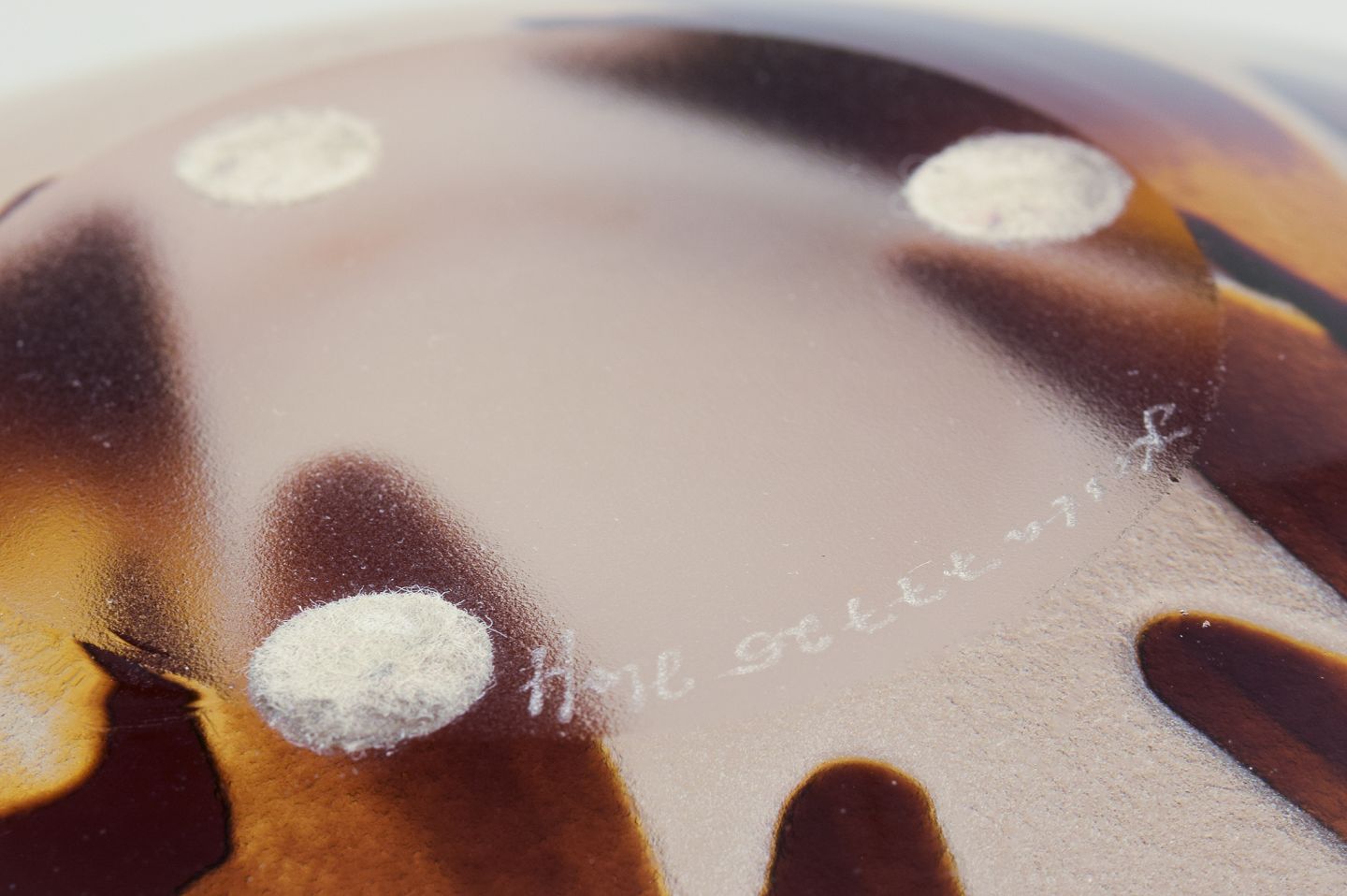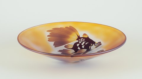 Paul Hoff (b. 1945) for Kosta Boda. Unique art glass bowl.Fish motif. Clear glass and glass in shades of brown/yellow.