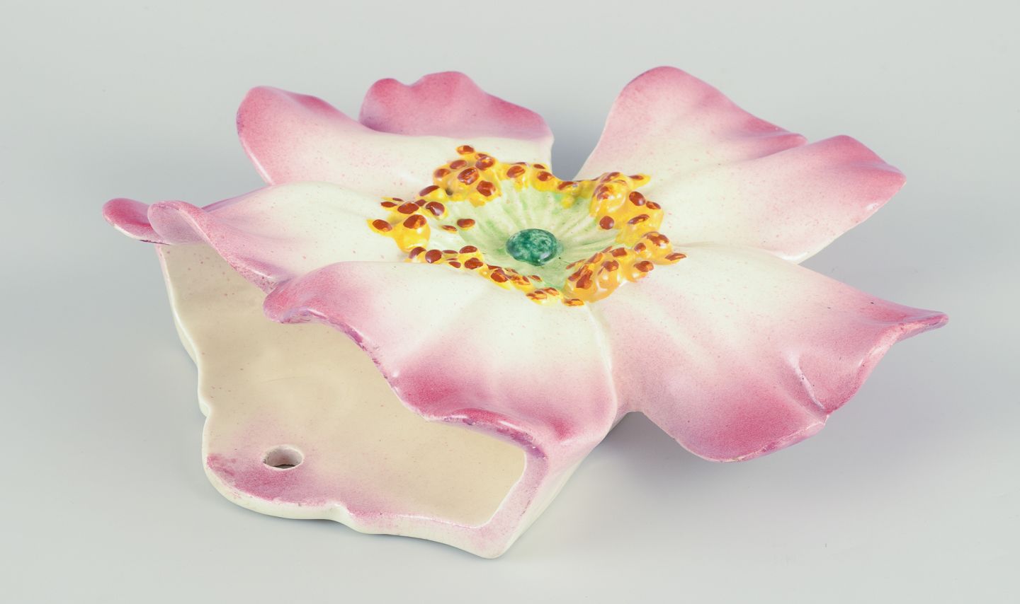 Delphin Massier for Vallauris, Frankrig.Urtepotteskjuler til væg i keramik, udformet som blomst, håndmalet.