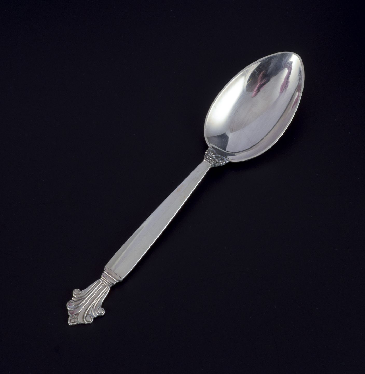 Georg Jensen Dronning, et sæt på fire spiseskeer i sterlingsølv.Efter 1945 stempel.