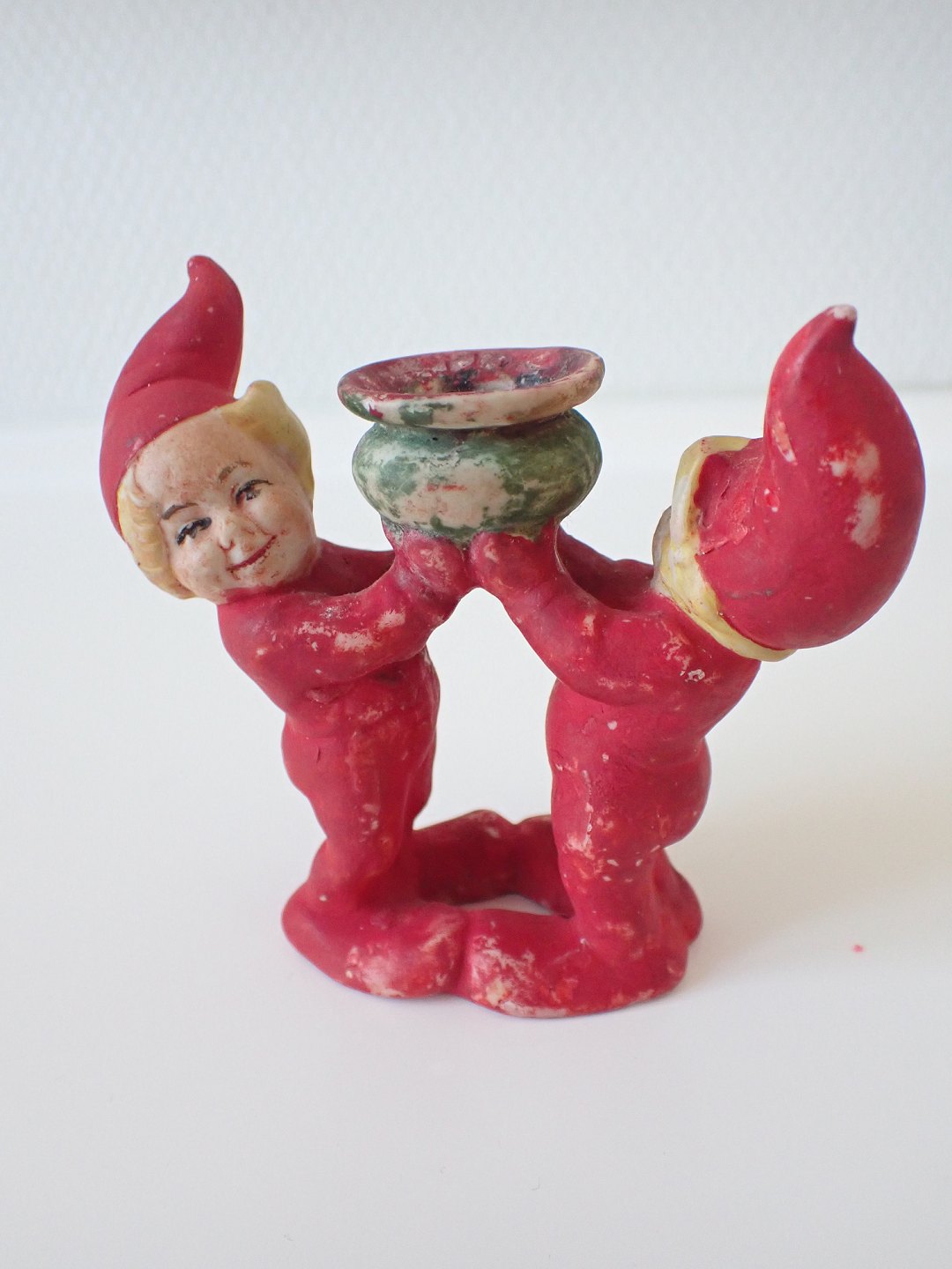 En julestage med et par nisser i i håndmalet biscuit. Tyskland ca. 1930. Højde: 9 cm. Bredde: 10 cm. I flot tidstypisk stand. Pris: 800 kr.En stor liggende håndmalet biscuit nisse. Tyskland ca. 1930. Længde: 10,5 cm. Højde: 5 cm. I flot tidtypisk stand. Pris. 600 kr.