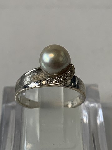 Hvidguldsring med Perle & Brillanter, 14 KaratStempel: 585, OE
