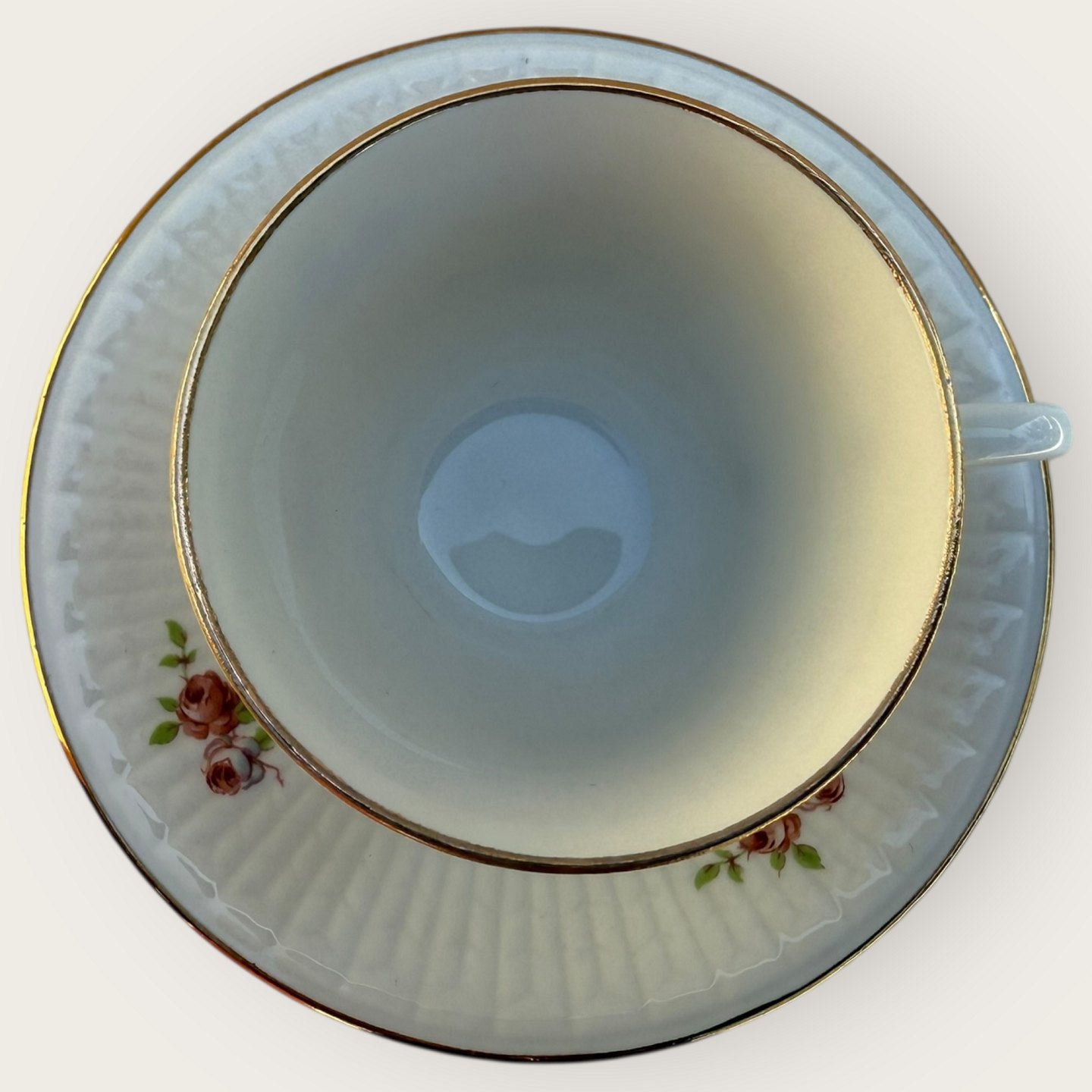 Rørstrand, lille kop med blomster og guldkant, 6 cm i diameter, 5,8cm høj, pæn stand.Lager: 4
