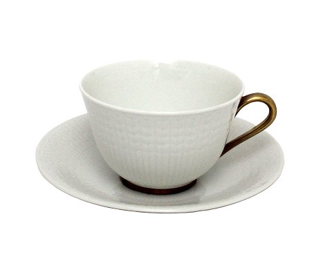 Rørstrand, Sweden, Swedish Grace med guld. Tekop med underkop. Dette stel er kun guldbelagt på ører/hanke, nederst på kop og inderste kant på underkop. Designet af Louise Adelborg (1915-1971) i 1930, som det store nationale servicestel. Grace stellet produceres endnu. Højde 6 cm. Øverste diameter 9,5 cm. Underkop diameter 14,5 cm. Fin stand, lidt slitage på guld på underkopper kan forekomme. Pris: 90 kr. stk. Lager: 7 Udstiller