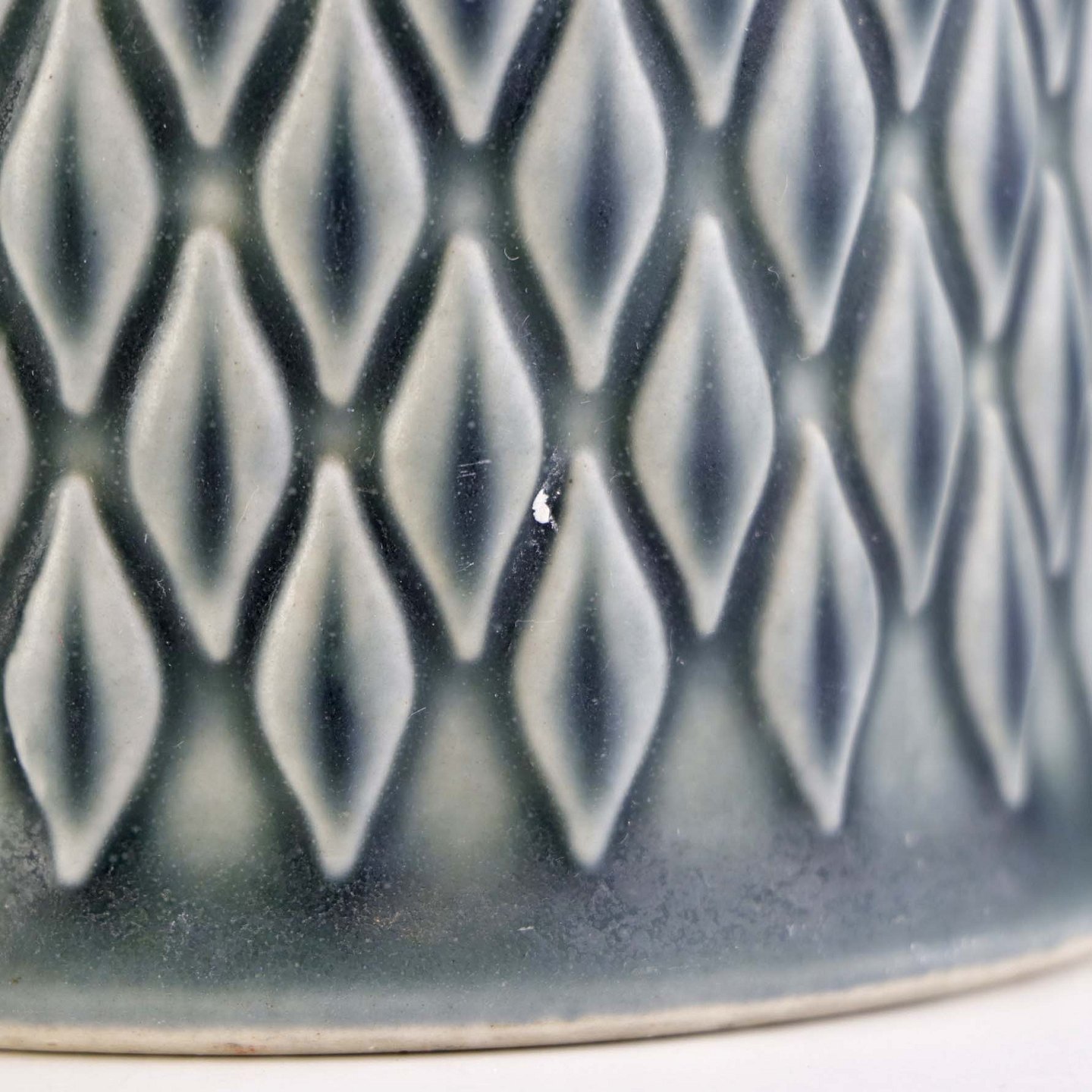Ølkrus eller kande med hank i fajance fra serien relief men med motiv af ruder. I farven azurblå.Formgiver Jens Harald Quistgaard
